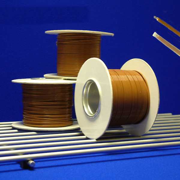• Conductor sizes 1/0.3mm, & 7/0.2mm flat pair construction as standard in Kapton